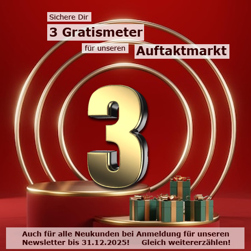 Wir schenken Dir 3 Gratismeter für unseren Auftaktmarkt.